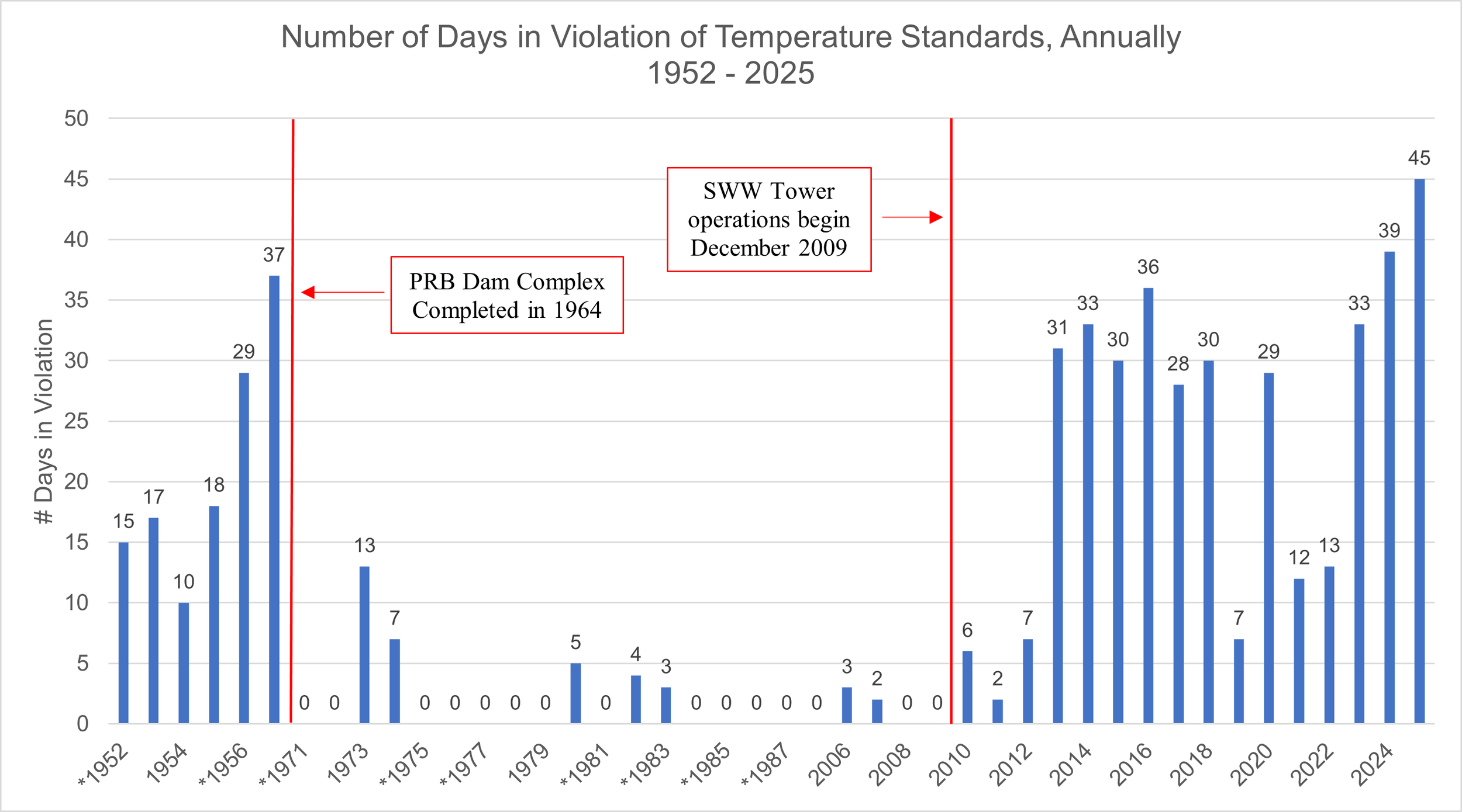 The DRA has recorded thousands of violations of state water quality standards since 2009. Poorer water quality has created conditions harmful to fish and other aquatic life.
